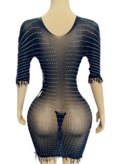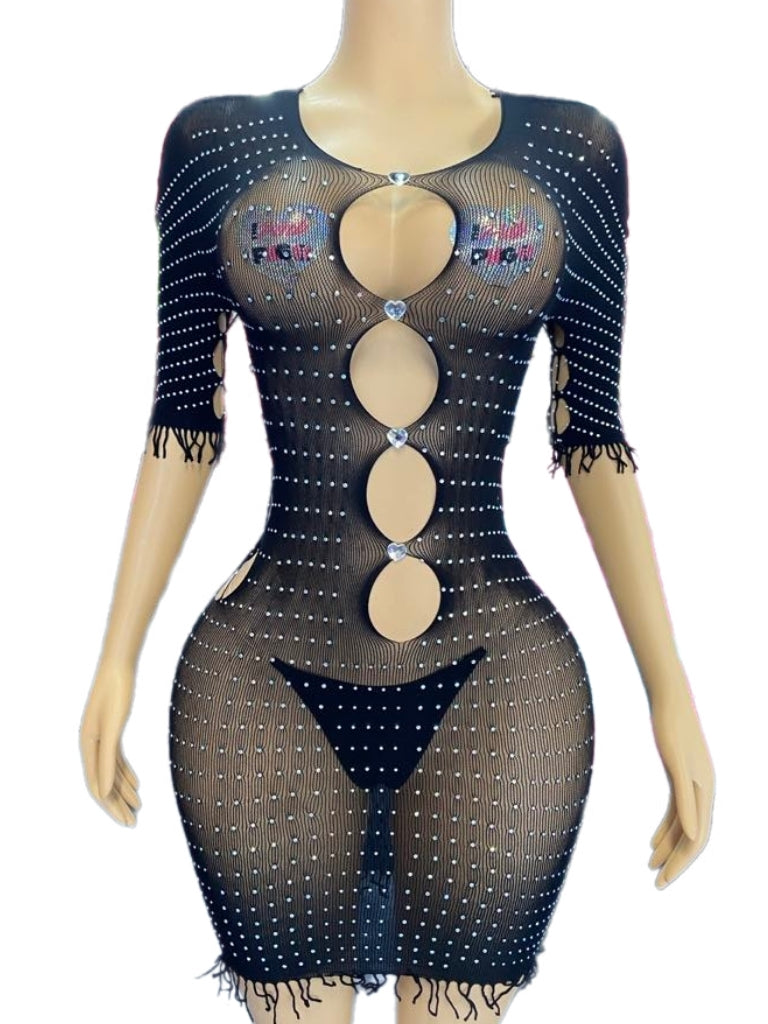 Beautiful Black Dress With Grand rhinestone Hearts And frills
