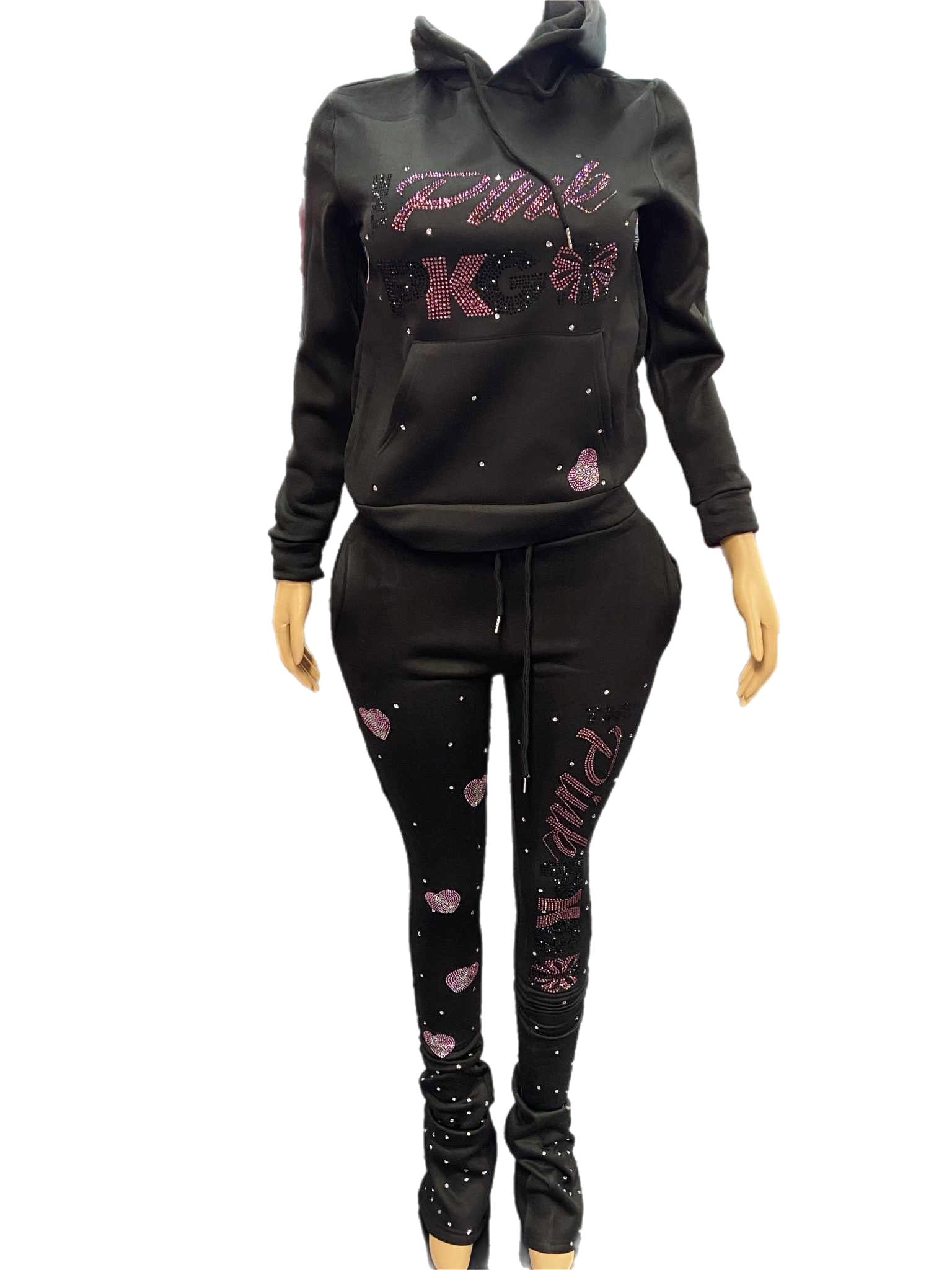 two piece sweatsuit set with rhinestones